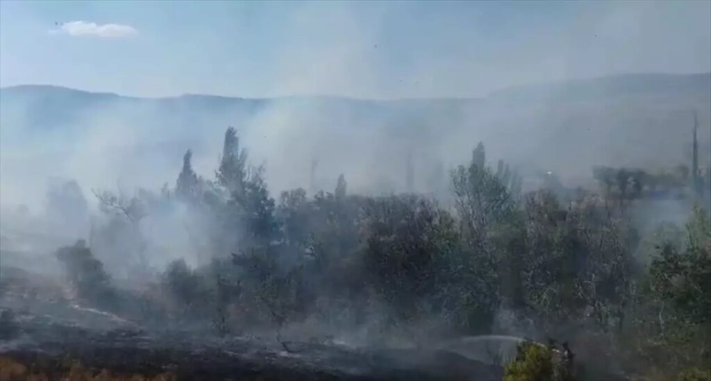 Pınarbaşı Mahallesi’ndeki boş yerde şimdi bilinmeyen nedenle yangın çıktı.