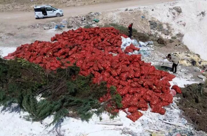 Karaman'da bir kısmı çürümüş tonlarca kuru soğan boş bir yere atıldı. Vilayet Tarım ve...