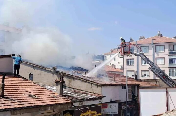 Karaman'da iş yerlerinin çatısında çıkan yangın, ağır duman ve patlama sesleriyle paniğe neden oldu....
