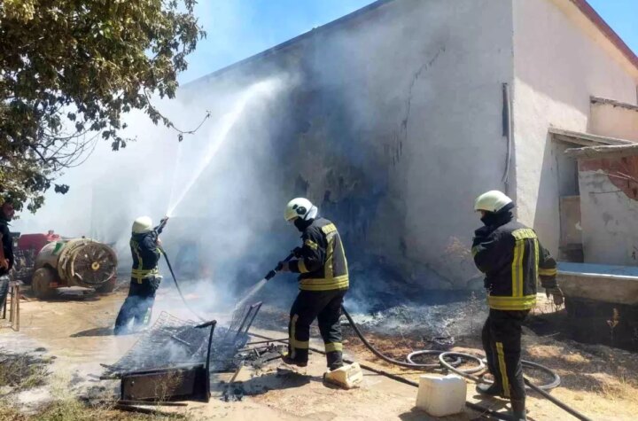 Konya'nın Ereğli ilçesinde bir depoda çıkan yangında, 2 traktör, mesken ve tarım gübreleri yanarak...