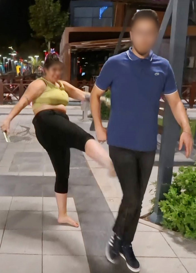 Yaşananlar cep telefonu kameralarına yansırken bayan, bir mühlet sonra olay yerine gelen polis grupları tarafından araca bindirilerek polis merkezine götürüldü.