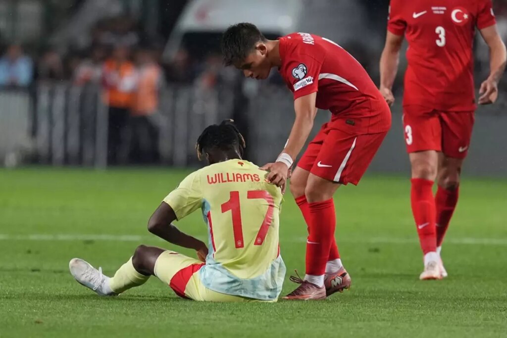 Marca’nın haberine nazaran; Türkiye – İspanya gayretinde sakatlanan yıldız futbolcu 6 hafta alanlardan uzak kalacak. Konya’da oynanan maçta sakatlanan Williams, yerini Ferran Torres’e bırakmıştı.